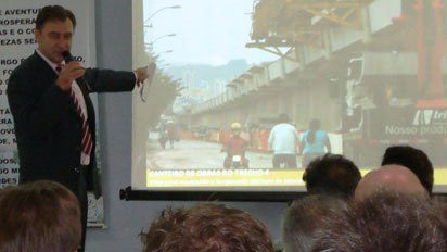 Humberto Kasper esteve na reunião-almoço quinzenal do Grupo Pensando Novo Hamburgo nesta quarta-feira, dia 19, e afirmou que “o cronograma das obras está sendo cumprido rigorosamente”. Refere-se à extensão da Linha 1 de São Leopoldo à Novo Hamburgo.