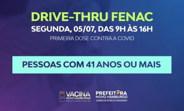 Nesta segunda-feira, dia 5, o drive-thru de vacinação contra a covid na Fenac, com entrada pelo acesso da Avenida Nações Unidas, será para pessoas com 41 anos ou mais.