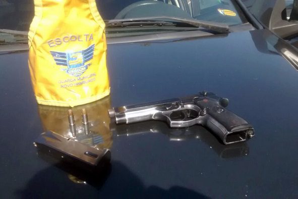 A Guarda Municipal de Novo Hamburgo prendeu, nesta quarta-feira, 9, um homem por porte ilegal de arma de fogo, desobediência e direção perigosa. A prisão ocorreu após um veículo fugir de uma barreira de trânsito na Avenida Sete de Setembro em direção à rodovia BR116 em alta velocidade. O carro, ocupado por dois homens, foi interceptado por dois guardas municipais em motos que acompanharem a fuga. A pistola 9mm, de uso exclusivo do Exército e que estava municiada, foi encontrada durante revista no interior do veículo.