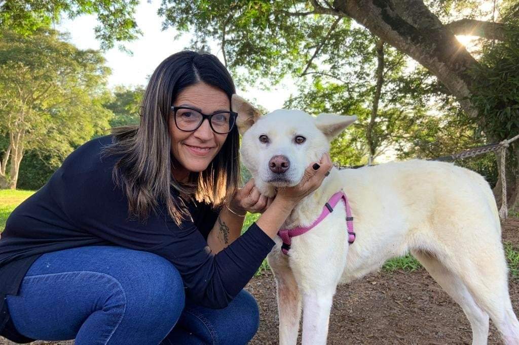A trajetória da cachorra Zoe, da raça Akita, é de muita superação.