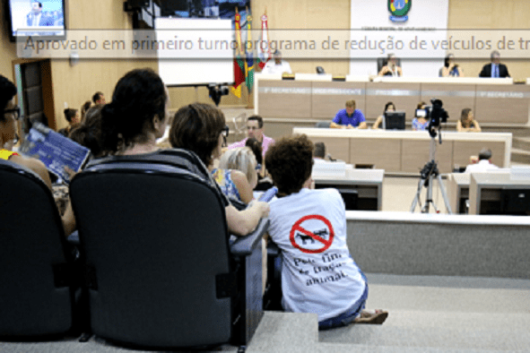 O substitutivo ao Projeto de Lei nº 122/2015, do ex-vereador Fufa Azevedo (PT), que institui o Programa de Redução Gradativa do Número de Veículos de Tração Animal, foi aprovado em primeiro turno nesta segunda-feira, 20. A proposta estava na pauta da sessão do dia 1º, mas Felipe Kuhn Braun (PDT) pediu 15 dias de vista. Fufa era vereador da legislatura passada