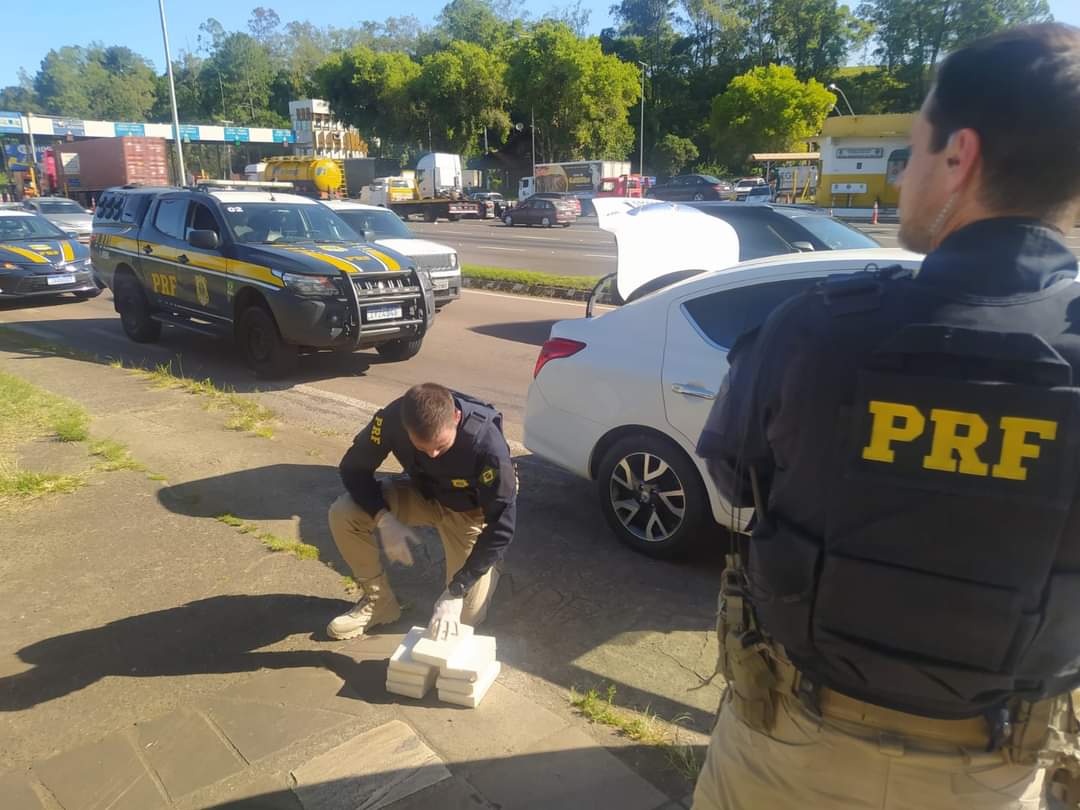 A Polícia Rodoviária Federal (PRF) encontrou sete quilos de cocaína escondidos em um automóvel Nissan Versa, no Rincão do Cascalho, em Portão, na tarde desta sexta (18). A ação iniciou na BR-116 e teve o desfecho na ERS-240, perto da praça de pedágio, onde o traficante foi preso. A captura decorre de uma operação conjunta que teve a participação dos serviços de inteligência da PRF e da Brigada Militar.