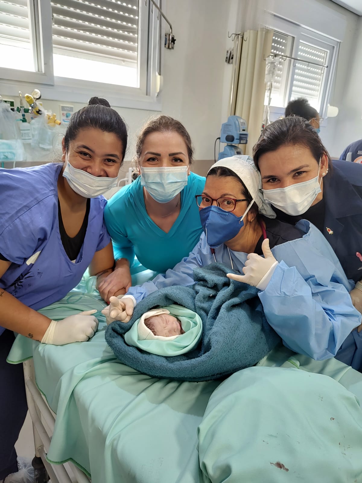 Com a chegada, toda a equipe médica, coordenada pelas médicas hamburguenses Rosessol Posse Wanderley e Valéria Gomes, a equipe conseguiu fazer o parto do bebê, que é menino, e estava em gestação de cerca de 7 meses.