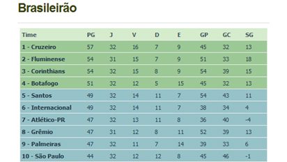 Vitórias de Fluminense e Cruzeiro, somado ao empate do Corinthians e no jogo Inter X Santos, indicam que título deverá ficar com o Flu ou a Raposa. Corinthians agora será a zebra se for campeão.