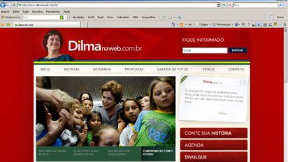 A novidade agora é a página pessoal da ex-ministra-chefe da Casa Civil na Internet. O lançamento ocorreu nesta segunda-feira, dia 19, em Brasília. Em formato de blog, Dilma na Web (foto) apresenta imagens da trajetória política da pré-candidata, incluindo uma galeria da infância, um acervo de notícias nos veículos de comunicação, propostas para o governo e um canal de vídeos.