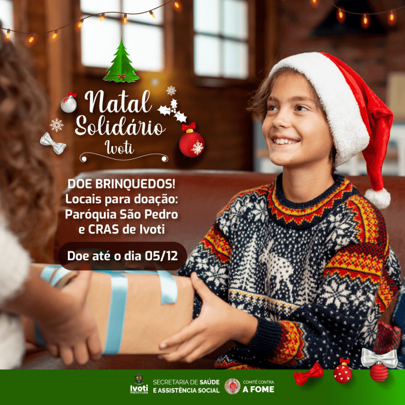 O Natal de alguém pode ser mais feliz com a sua ajuda. O Natal Solidário Ivoti está arrecadando brinquedos para a festa de Natal do Centro de Referência de Assistência Social (CRAS) com o Comitê Contra a Fome.