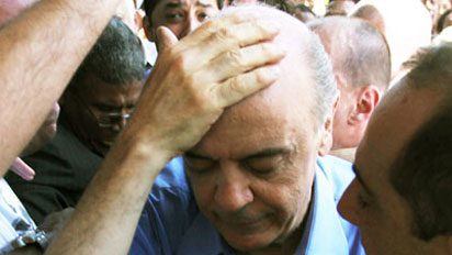 O tucano fazia campanha no Rio de Janeiro quando foi atingido por um objeto na cabeça, depois de confusão envolvendo militantes e eleitores de Dilma Rousseff (PT) no segundo turno das Eleições 2010, e acabou em uma clínica na Zona Sul da cidade.