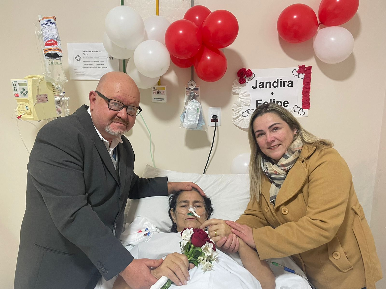 A irmã, Silvana Cardoso, relata o momento emocionante. “Os médicos, com segurança, a retiraram do oxigênio. Felizmente, houve uma melhora e ela saiu da UTI no sábado, e foi para o quarto. Mesmo com toda a situação, ela tinha esse grande sonho: se casar com o companheiro que vive há 25 após”, comenta. “Então os filhos, logo sabendo, foram providenciar as alianças, o pastor, e o hospital fez uma decoração, até com buquê de flores”, conta. Silvana disse que toda a família acompanhou o momento em uma chamada de vídeo.