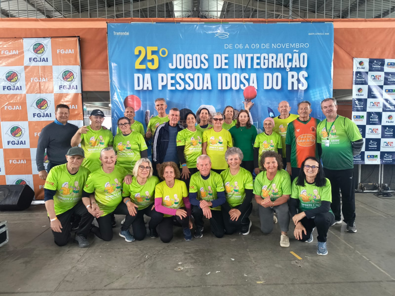 O grupo do projeto Esporte e Saúde na Melhor Idade, de Dois Irmãos, participou recentemente de um encontro estadual voltado ao público da terceira idade, realizado em Farroupilha entre os dias 6 e 9 de novembro. A equipe representou o município nas disputas de câmbio, modalidade esportiva semelhante ao vôlei, mas adaptada para promover inclusão e bem-estar entre pessoas idosas. O encontro reuniu mais de 1.500 idosos.