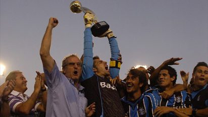 Fim de jogo e dupla comemoração tricolor, primeiro pelo título do primeiro turno do Gauchão 2010 e segundo para comemorar o primeiro jogo da temporada 2010 sem sofrer gol.