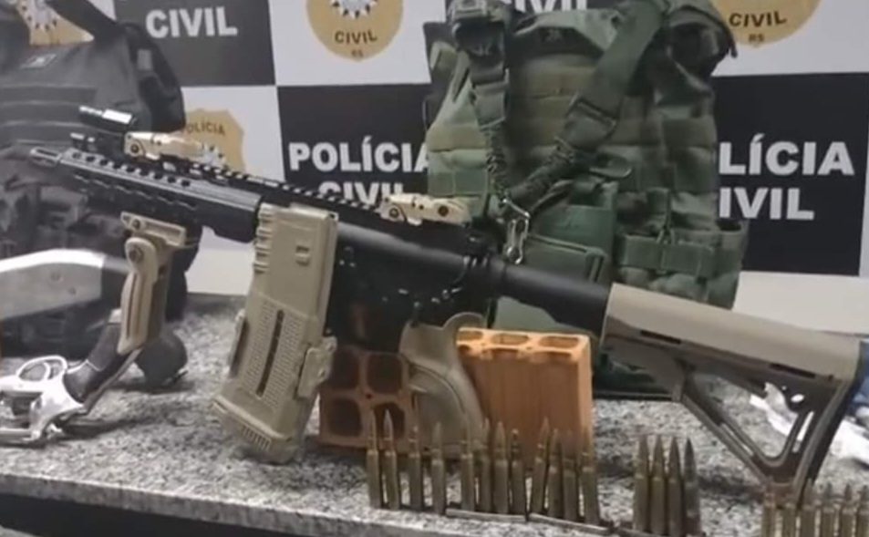Na tarde de quinta-feira (24), a Polícia Civil localizou um arsenal, contendo grande quantidade de armas de grosso calibre, acessórios para conversão das armas, munição, coletes balísticos, explosivos, uniformes, botas e outras vestimentas. Segundo a autoridade policial, uma residência localizada em Sapiranga era monitorada pelos policiais civis tendo em vista o recebimento de informações do início da semana, quando foram apreendidos mais de 2 KG de cocaína no Bairro Roselândia, em Novo Hamburgo.