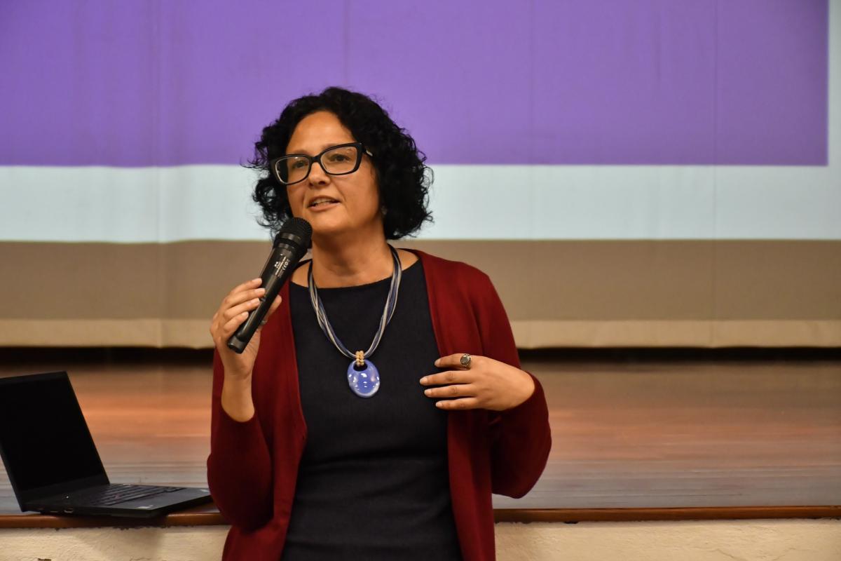 Promotora que realizou a palestra, Roberta Gabardo Fava. Foto: Weslei Fillmann/PMNH