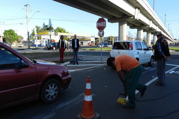Foram instaladas nas aproximações do cruzamento placas de “PARE”, outras indicando o limite de velocidade, e de alerta informando a existência da rótula. Também foram revitalizadas as pinturas horizontais de “PARE”, de “DEVAGAR”, e de áreas neutras com tachões nas aproximações. Conforme a titular da Diretoria de Trânsito (DITRAN), Regina Soares, as alterações visam ordenar o trânsito no local, oferecendo mais segurança para os veículos durante as travessias. “É sempre bom reforçar que os motoristas devem ter atenção e parar no cruzamento antes de atravessar”, destaca.