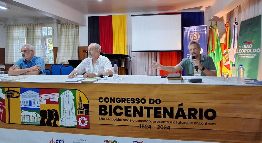 Nesta quarta-feira, 27 de março, ocorreu a última mesa redonda do Congresso do Bicentenário de São Leopoldo. O eixo temático da vez foi sobre religião, com a mesa moderada pelo Prof. Dr. Oneide Bobsin, a palestra contou com a participação de Ricardo Willy Rieth e Wilhelm Wachholz, doutores em Teologia.