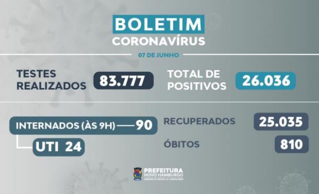 Com a atualização Novo Hamburgo chega a 26.036 casos confirmados e 810 mortes associadas à covid. As vítimas são duas senhoras de 64 e 88 anos.