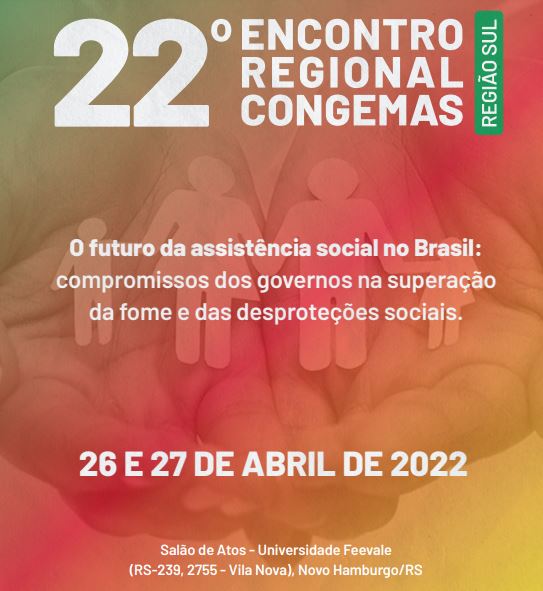 Novo Hamburgo sedia nesta terça e quarta-feira, dias 26 e 27, o 22º Encontro Regional Congemas – Região Sul, uma promoção da Federação das Associações de Municípios do Rio Grande do Sul (Famurs). O evento ocorre no Salão de Atos da Universidade Feevale. O encontro do colegiado contará com painéis temáticos; oficinas sobre novas estratégias, inovação em gestão e trabalho social; e o balanço do sistema na Região Sul, abordando impactos da crise, fome e desigualdade social.