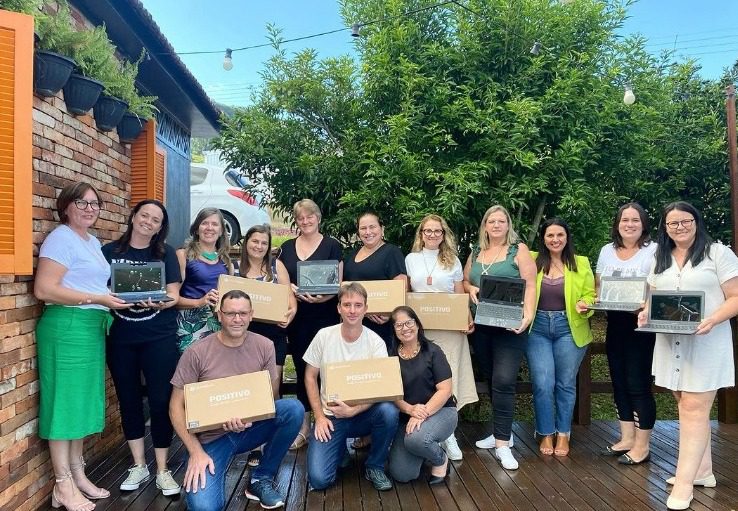 Na oportunidade, a prefeita fez a entrega de chromebooks adquiridos pela Administração Municipal para uso nas escolas municipais. São 67 unidades que serão distribuídas às seis instituições de ensino, em um investimento de R$ 140.080,92.