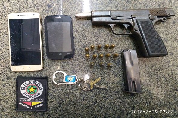 Uma pistola foi apreendida pela Guarda Municipal de Novo Hamburgo durante mais uma edição da Operação Balada Segura, realizada na Avenida Sete de Setembro, na noite de quarta-feira, 28. Na blitz, um motorista conduzindo um veículo, modelo Nissam Livina, tentou fugir da fiscalização e acabou abordado pelos agentes, que localizaram com um dos passageiros do carro uma pistola Browning calibre 9 mm, municiada com 13 cartuchos intactos. A ocorrência foi registrada na Delegacia de Polícia de Pronto Atendimento do município.