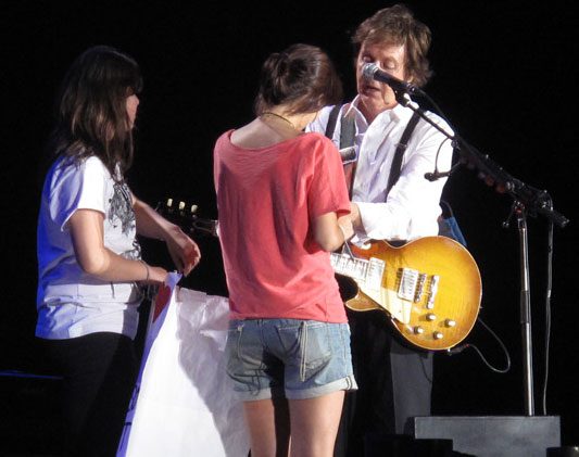 Antes, ao ver tantos cartazes de boas-vindas e pedidos inusitados, Paul não resistiu e chamou ao palco duas fãs. Demonstrando carinho, autografou o braço das meninas que, extasiadas, aproveitaram a oportunidade para abraçar o ídolo. “Obrigado, Porto Alegre. Até a próxima.” Que seja em breve!