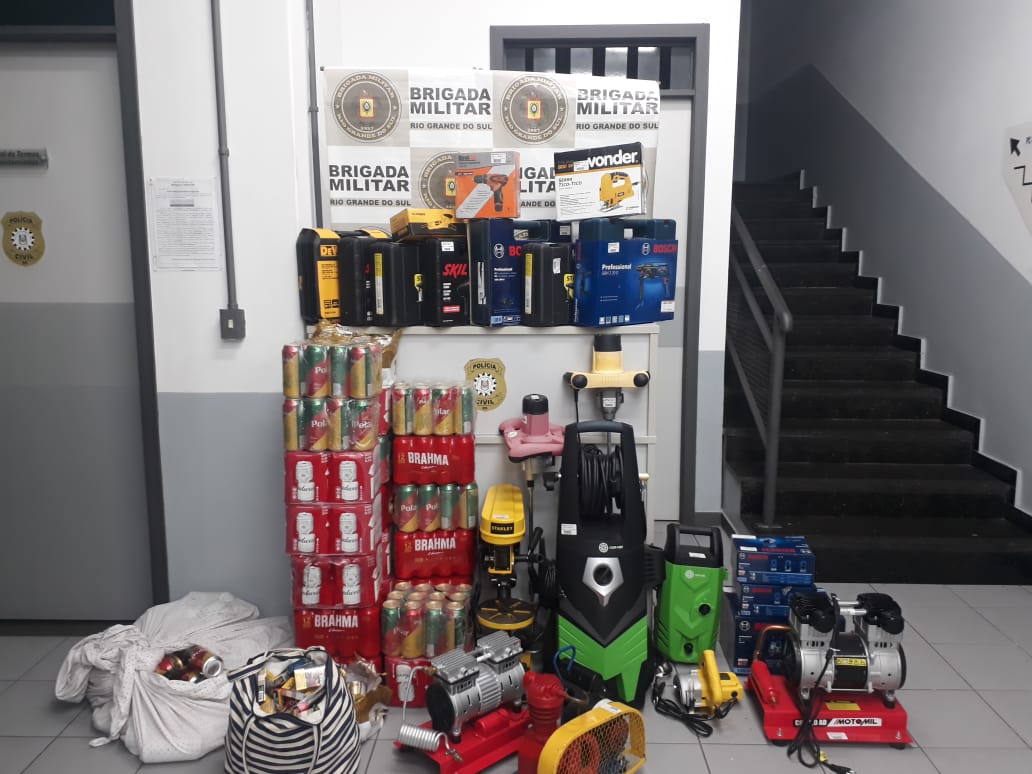 Através das imagens das câmeras de segurança dos estabelecimentos, foi possível confirmar a participação de todos os detidos nas ocorrências. Na ação foi apreendida uma carabina, sem numeração, calibre .22, e recuperados dezenas de materiais, como serras, compressores de ar, furadeira, batedor de massa, empilhadeira, dezenas de latas de cerveja e outros itens.