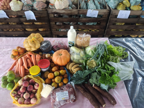 O primeiro passo é a aquisição dos alimentos que é feita pela Secretaria de Agricultura. A entrega foi realizada pelos 25 produtores cadastrados nessa remessa, na manhã desta terça-feira, 14, totalizando 4.074 kg. O conteúdo da cesta vai variar conforme a estação, principalmente em relação às hortaliças que sofrem mais com as mudanças de tempo. Ao todo, são 32 produtores cadastrados no programa. Nesta primeira compra estão: aipim, batata inglesa, feijão, carne de porco, leite, mel, pão caseiro, cuca, chimia, queijo, tempero verde, pimentão, rabanete, moranga, rúcula, pepino, cenoura, couve-flor, beterraba, brócolis, alface, espinafre, repolho, couve, cebola, pêssego, banana, limão e laranja.