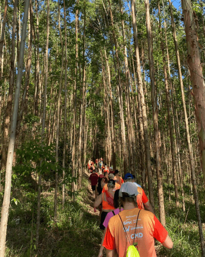 O percurso de 6km teve duração aproximadamente de duas horas e passou por trilhas na mata, ruas e atividades agropecuárias.