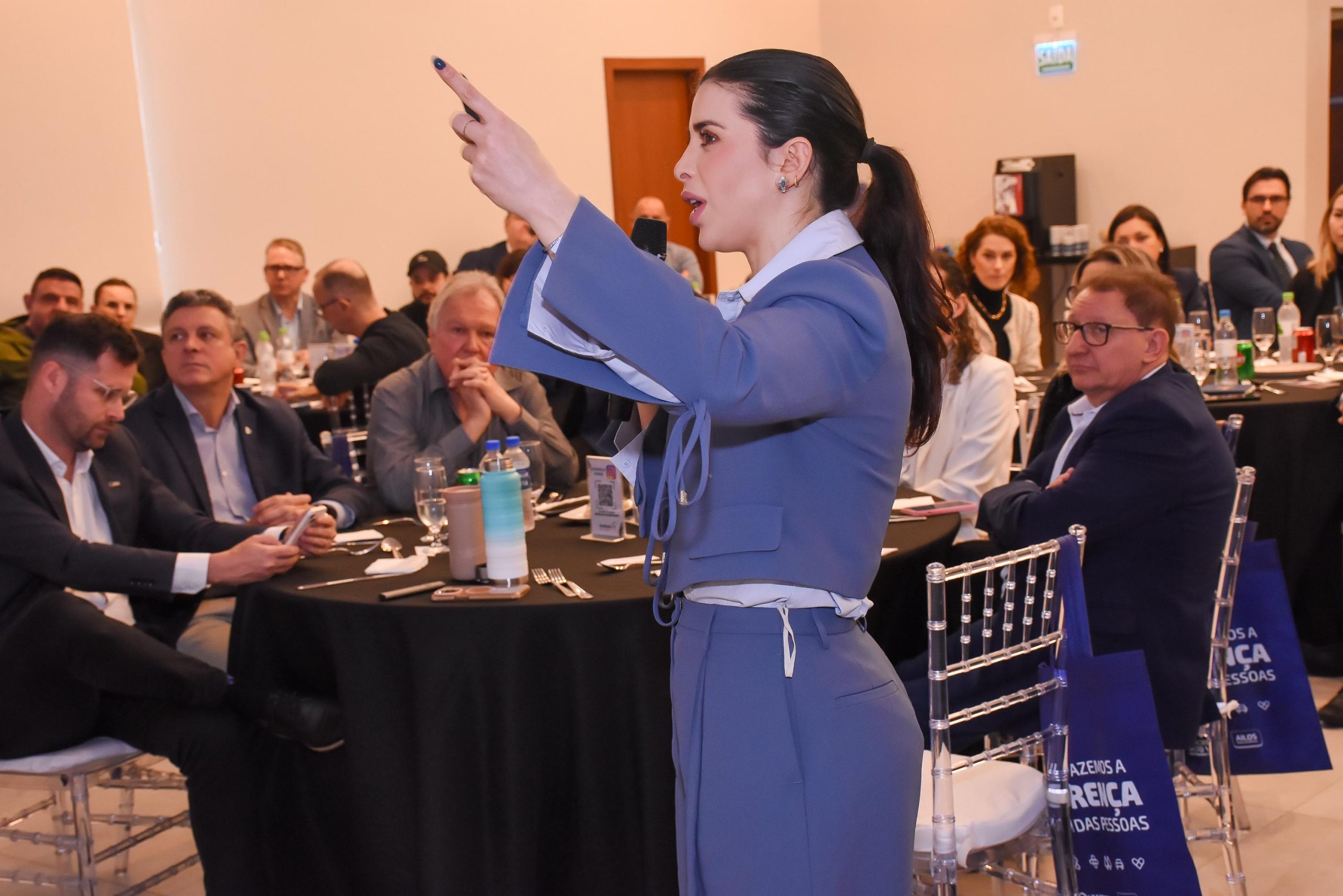 CEO da Termolar, Natalie Ardrizzo destacou, em reunião-almoço do Sindilojas, como a empresa superou crises e se manteve relevante no mercado de soluções térmicas.