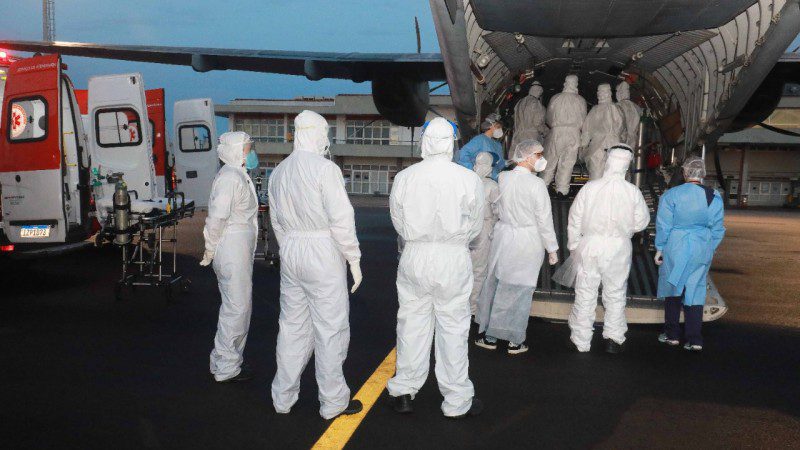 Outros nove pacientes Covid vindos de Porto Velho, capital de Rondônia, em avião da Força Aérea Brasileira (FAB), desembarcaram no aeroporto de Porto Alegre por volta das 5h30 desta sexta-feira (29/1). Com idades entre 30 e 74 anos, seis homens e três mulheres foram levados a três hospitais: Clínicas, Nossa Senhora da Conceição e Vila Nova. Cada uma das instituições na capital gaúcha recebeu três pessoas. Todos ocuparão leitos clínicos, e só serão internados na UTI em caso de piora.