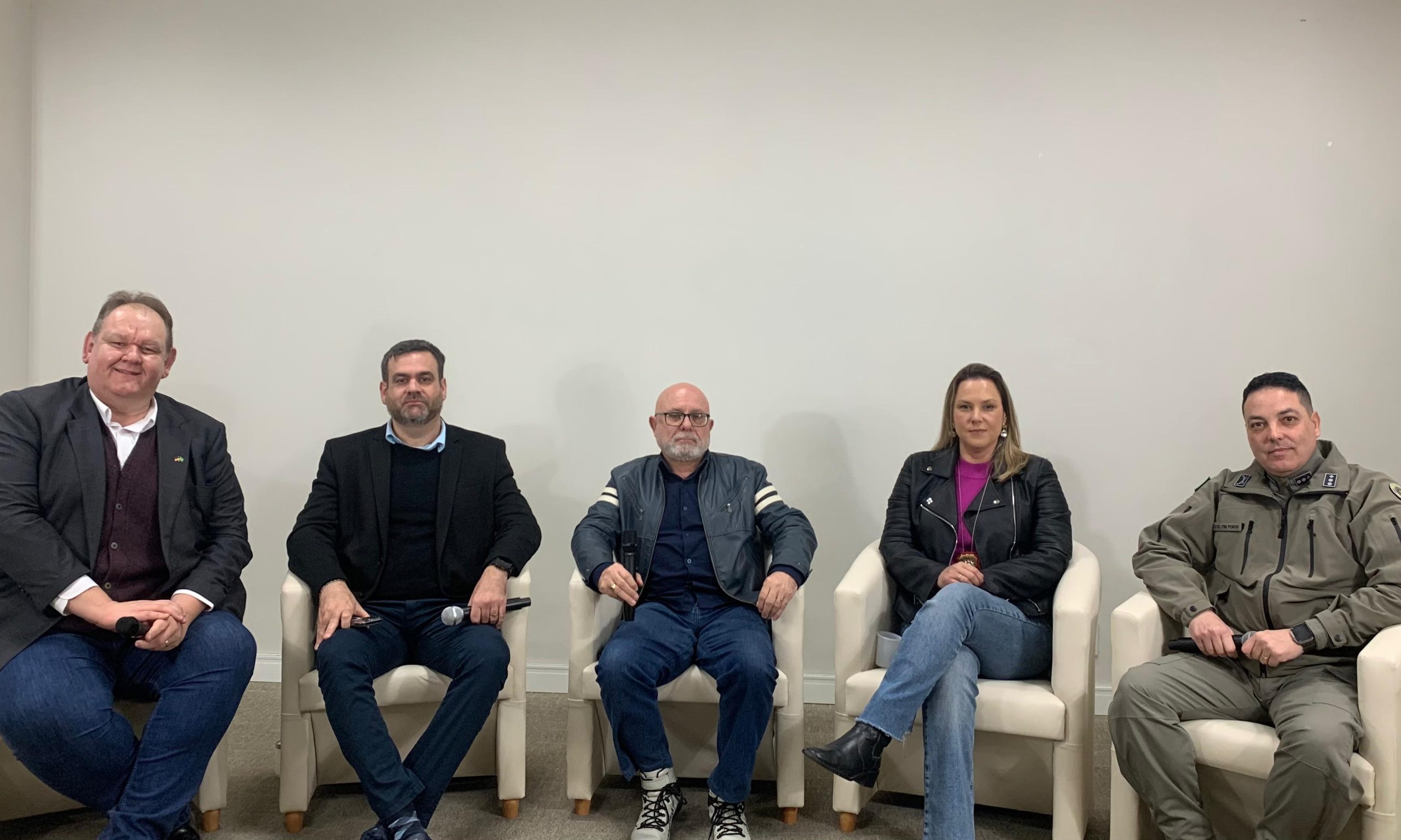 O encontro reuniu o presidente da Acist, Daniel Klafke; o comandante do 25º BPM, tenente-coronel Luciano Ferreira Porto; a delegada titular da Delegacia Especializada no Atendimento à Mulher (DEAM), Michele Arigone; e o presidente do Consepro, Rogério Daniel da Silva.