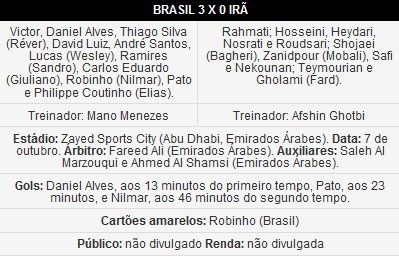 Daniel Alves, Alexandre Pato e Nilmar garantiram a goleada, que não diz o que foi o jogo. O Brasil chegou a levar pressão dos iranianos. Tomou até gol mal anulado quando o placar ainda era 0 a 0.