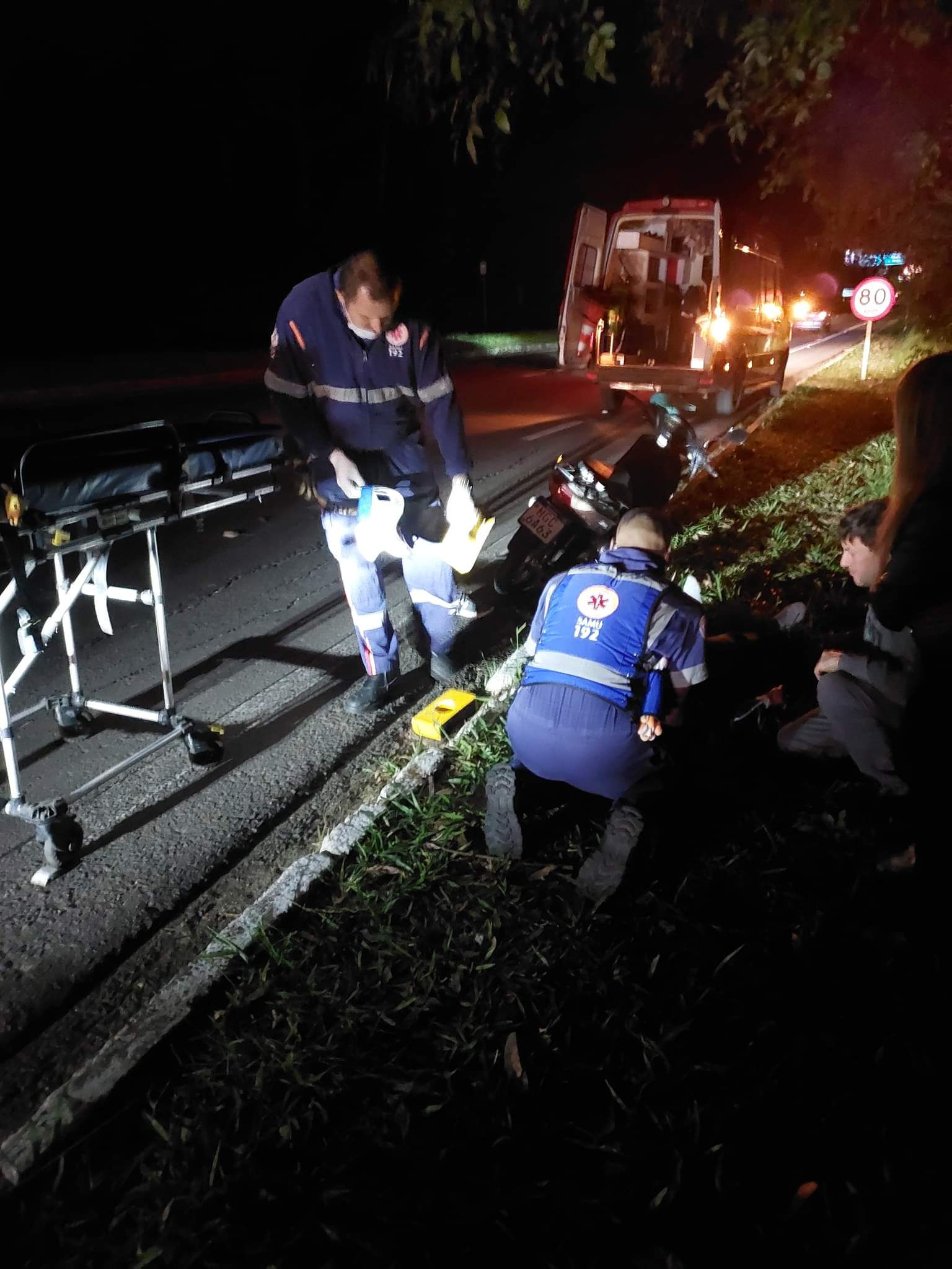 O motociclista ficou no meio da via, com total risco de ser atropelado e virar, até uma vítima fatal. Mas, felizmente, estava consciente, e conseguiu atravessar sua moto pela rodovia, até chegar ao acostamento. Um hamburguense e leitor do DuduNews ajudou na cena. “O que mais me chamou atenção foi a escuridão absurda daquela descida, por sorte enxerguei a moto no chão e parei o carro imediatamente e prestei socorro. Mesmo bastante machucado, o motociclista arrastou a moto para não ser atropelado”, contou ele a reportagem.