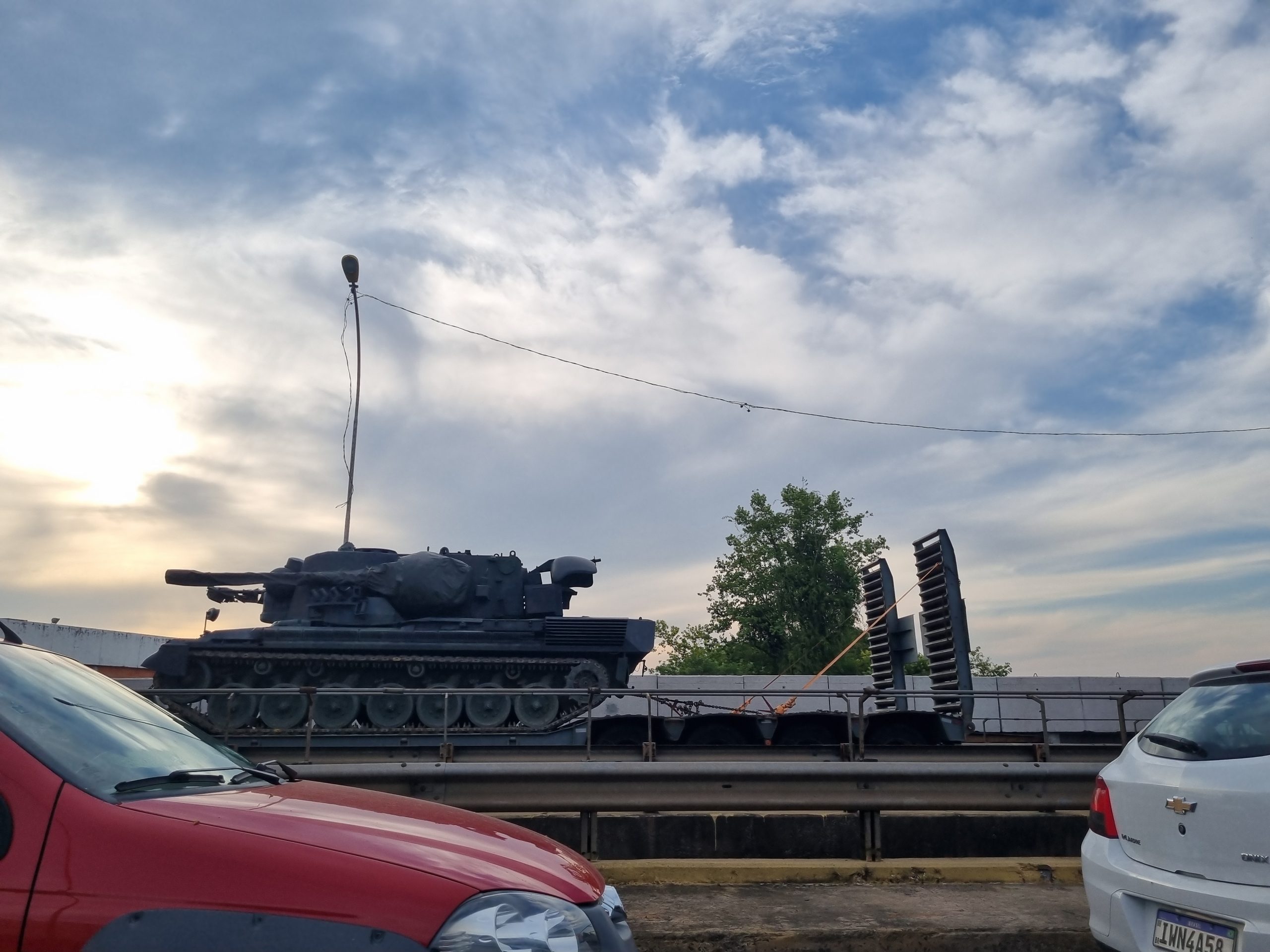 É possível que estes sejam tanques que integram a frota de carros militares que serão doados ao Uruguai. A reportagem contatou a assessoria de imprensa do Exército mais obter mais informações sobre o fato, e aguardamos retorno.