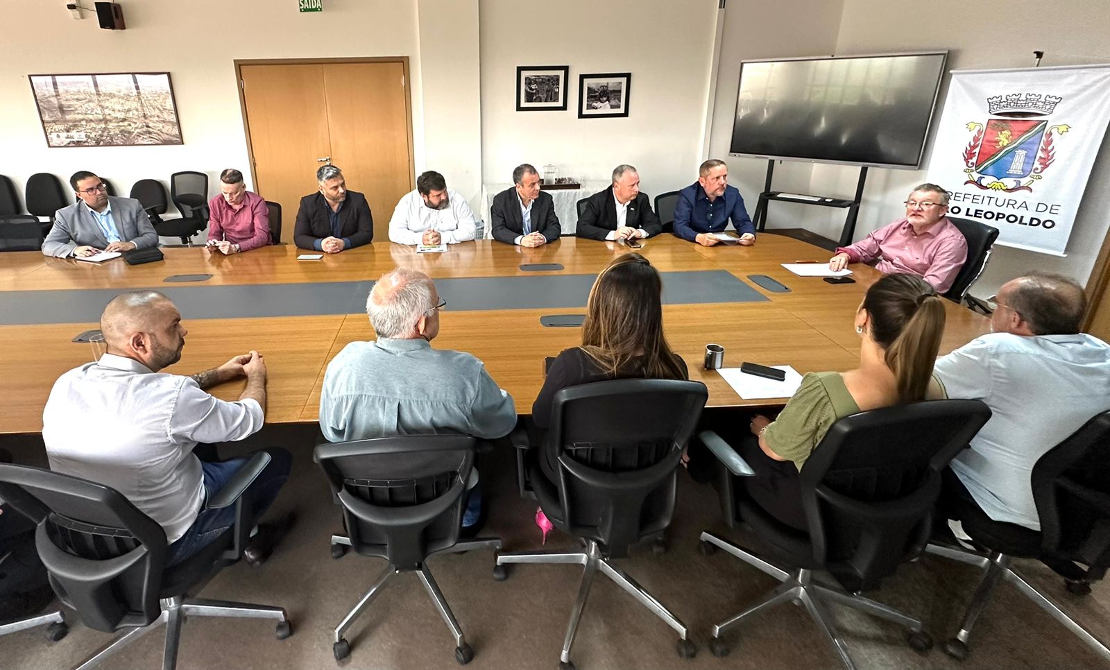 Na manhã desta segunda-feira (14), o prefeito de São Leopoldo, Ary Vanazzi, reuniu pela primeira vez os integrantes da Comissão de Transição com a equipe do prefeito eleito Heliomar Franco. O encontro serviu para combinar o fluxo de trabalho das reuniões e os nomes que deverão integrar a portaria de transição.