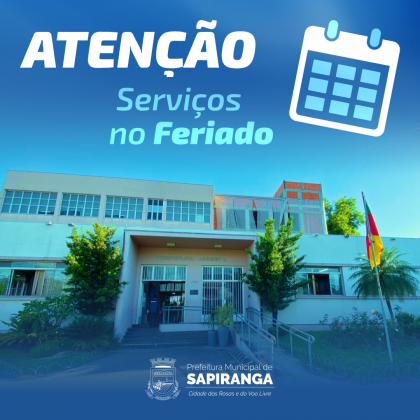 - O funcionamento da Prefeitura Municipal de Sapiranga, bem como das Secretarias, retorna ao normal na quarta-feira, 14, com atendimento ao público das 12h30 às 18h30.